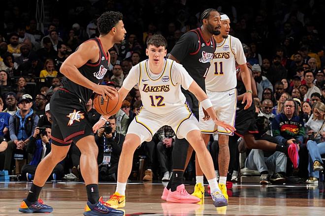 本场比赛中,湖人的替补侧翼新援杰克-拉拉维亚(Jake LaRavia)的表现显然是不太理想的。拉拉维亚全场出场17分02秒,投篮4中1,三分线外4中1,罚球2中1,得到了4分2篮板的数据,还有1次失误和3次犯规,正负值为+12。拉拉维亚其实在进攻端也是得到了一些机会的,但是他并没有将自己的投射能力发挥出来,他在场上并没有做到帮助队友拉开空间的效果,他在自主进攻方面的特点也是没有发挥出来。拉拉维亚如果能够在进攻端发挥出更大的作用,那么湖人在进攻端的情况会更加理想,球队也会打得更加轻松一些。除此之外,拉拉维亚在防守端的表现也不能算是特别突出的水平,他的防守贡献度也比较一般,也没有起到很好的效果。至少在本场比赛中,拉拉维亚的表现非常平庸,没有完全发挥出自己的价值。